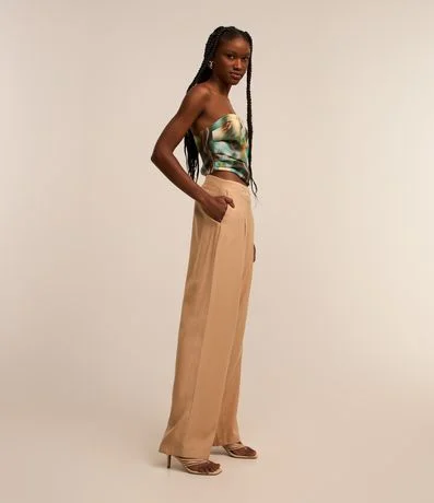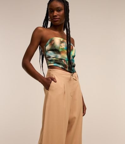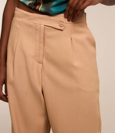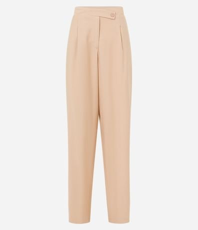 Ref: Calça feminina de modelo reto, confeccionada em viscose, de corte alfaiatado, com pregas e cós deslocado. Possui fechamento frontal.