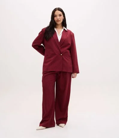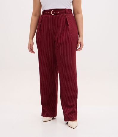 Calça Reta Alfaiatada com Risca de Giz e Cinto Curve & Plus Size