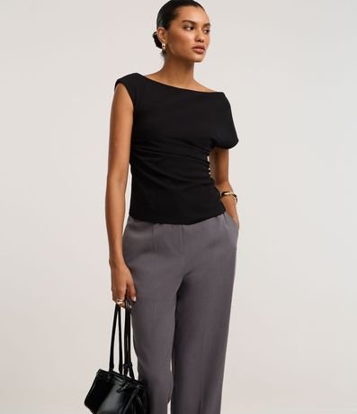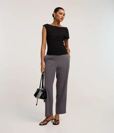 Ref: Calça reta alfaiatada, confeccionada em tecido plano com elastano, com passantes no cós, fechamento tradicional, elástico no cós, bolsos frontais e tecido texturizado. Este produto possui viscose certificada em sua composição, além de ter sido produzido através de processos mais sustentáveis, sendo ambientalmente mais responsável.