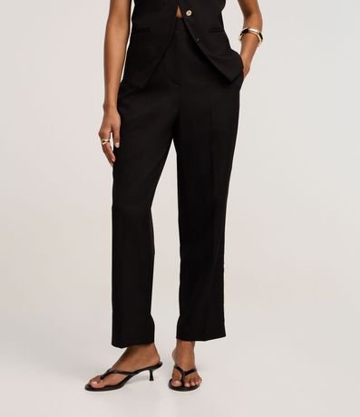 Ref: Calça reta alfaiatada, confeccionada em tecido plano com elastano, com passantes no cós, fechamento tradicional, elástico no cós, bolsos frontais e tecido texturizado. Este produto possui viscose certificada em sua composição, além de ter sido produzido através de processos mais sustentáveis, sendo ambientalmente mais responsável.