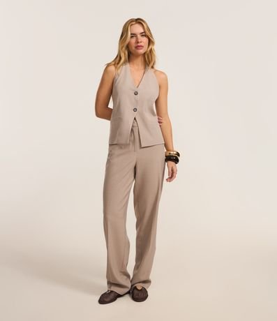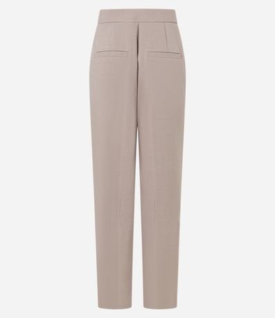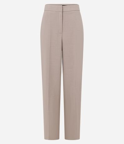 Calça alfaiatada de corte reto, confeccionada em crepe, com cós fixo, sem estampa e com bolsos faca nas laterais. A peça conta com fechamento frontal em vista oculta.