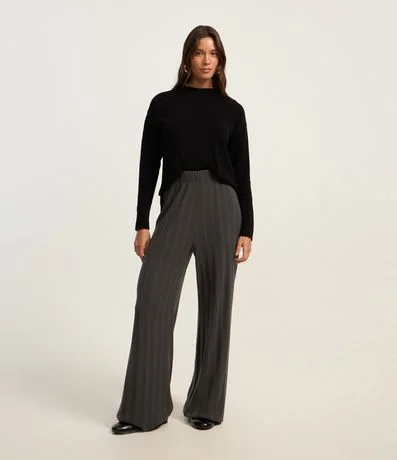 Calça Reta Canelada Felpada e Quentinha com Listras