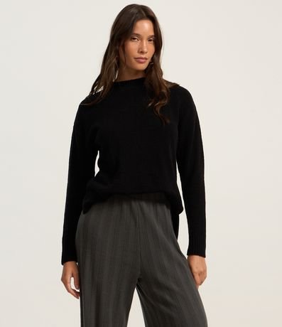 Calça reta com cintura alta, textura caneladinha, felpado quentinho e com cós simples.