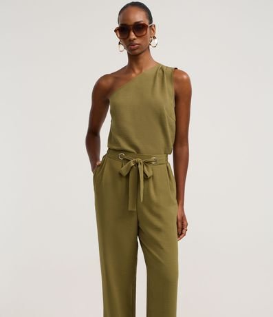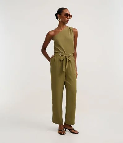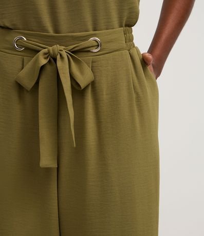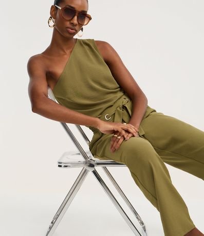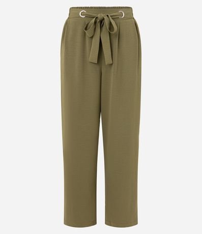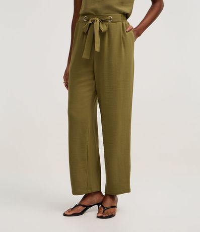Ref: Calça reta de cintura alta, confeccionada em airflow, com amarração na cintura.