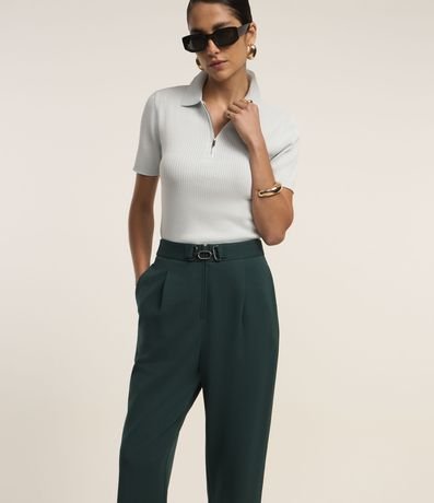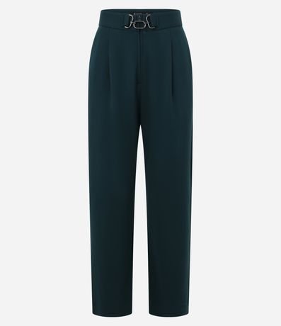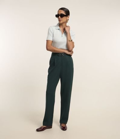 Ref: Calça reta feminina em ponto roma, com cintura alta, cinto com fivela e bolsos.
