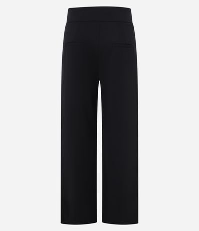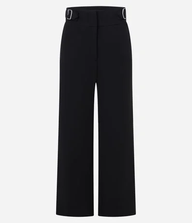 Ref: Calça reta de cintura alta confeccionada em crepe. Roupa tem fivelas nas laterais do cós.