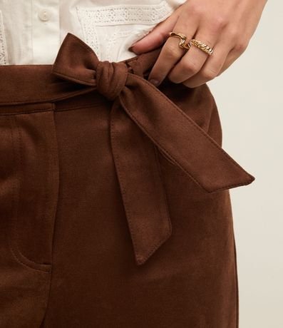 Calça Reta Cintura Alta em Suede com Cinto de Tecido
