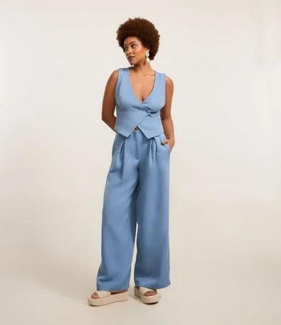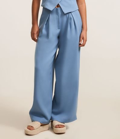 Calça alfaiataria, reta com cintura baixa, sem cós com pregas frontais e bolsos faca.