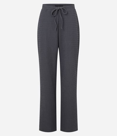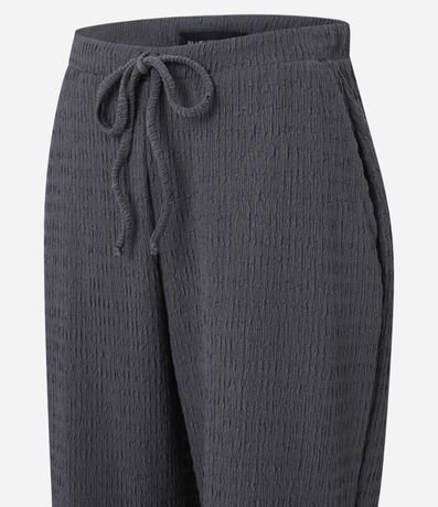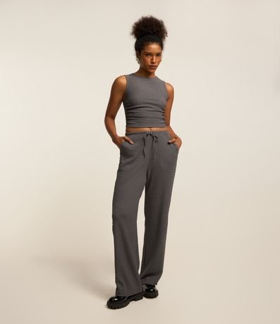 Ref: Calça feminina confeccionada em poliéster e elastano, cós elástico com cordão e textura.
