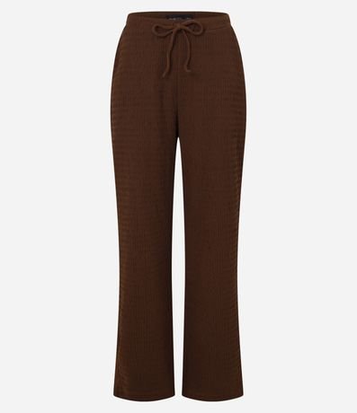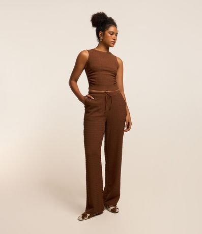 Ref: Calça feminina confeccionada em poliéster e elastano, cós elástico com cordão e textura.