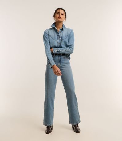Ref: Calça reta, comfort confeccionada em jeans com algodão bci mais sustentável, com cintura alta e passantes no cós. Modelo possui bolsos frente e costas e foi produzida através de baixo consumo de água.