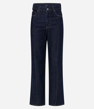 Calça Reta Comfort em Jeans com Costura Aparente