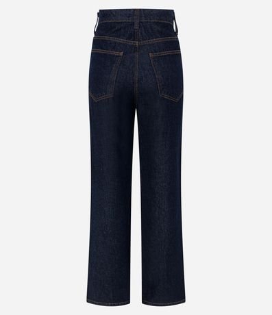 Calça reta comfort, confeccionada em jeans, com cintura alta, passantes no cós, fechamento tradicional, bolsos e costura aparente com contrastes. Este produto possui algodão certificado BCI em sua composição, além de ter sido produzido através de processos mais sustentáveis, sendo ambientalmente mais responsável.