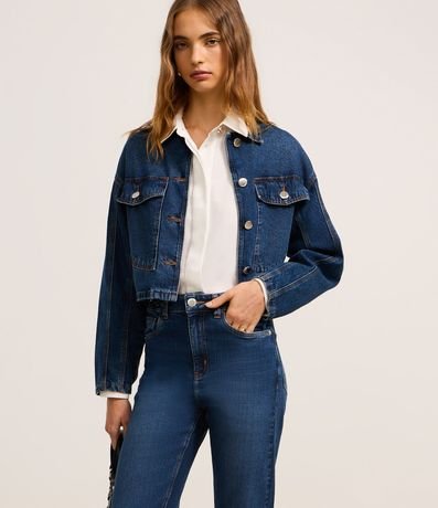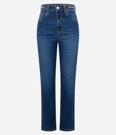 Calça Reta Comfort em Jeans com Grilhão no Cós