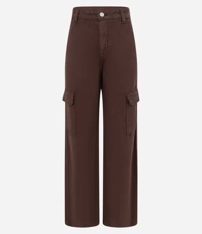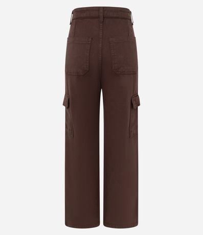 Ref: Calça feminina de modelo reta, comfort, com cintura alta e bolsos cargo laterais com lapela. Peça confeccionada com material e processo mais sustentável.