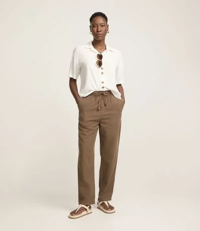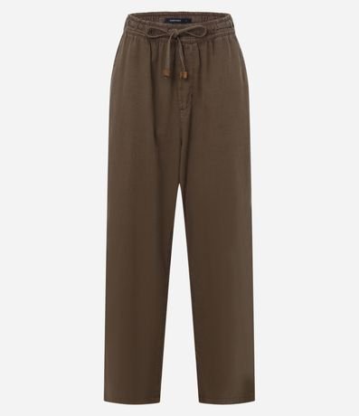Calça Reta Cropped Cintura Alta em Sarja com Amarração