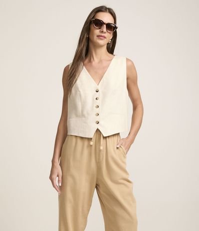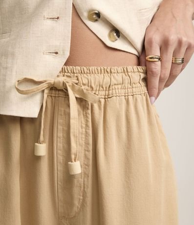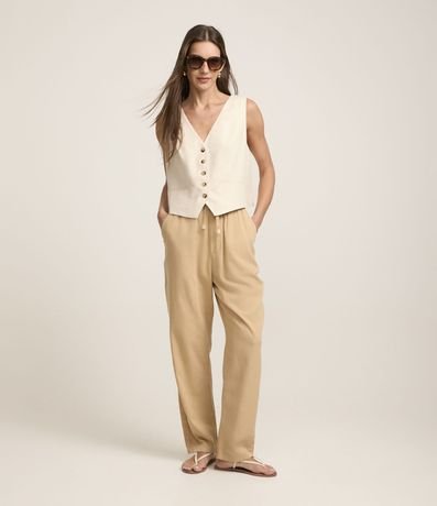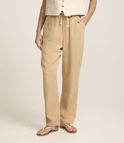 Ref: Calça feminina no modelo reta cropped em sarja, com cós elástico e bolsos.
