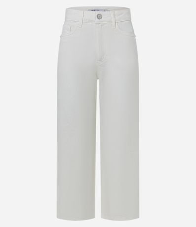Ref: Calça reta, cropped com passantes no cós, confeccionada em sarja cm algodão bci mais sustentável e bolsos frente e costas.