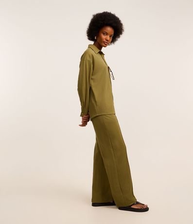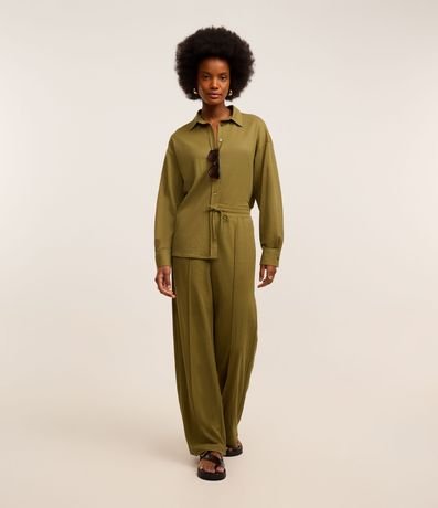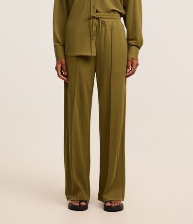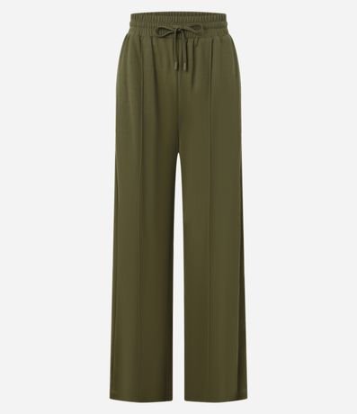 Ref: Calça feminina de modelo reto, confeccionada em malha piquet, com cós elástico e cintura alta. Sem estampa, a peça possui detalhe de friso frontal e também cordão para amarração a cintura.