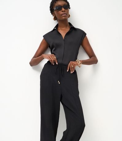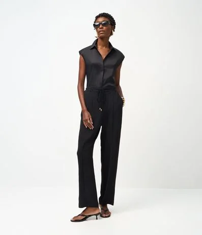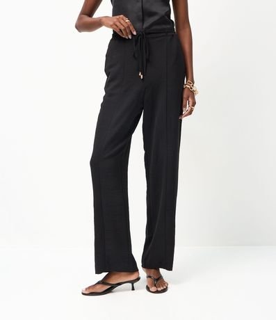 Ref: Calça feminina em tecido airflow confeccionado em poliéster certificado. Possui modelagem reta, cós com elástico para maior conforto, cintinho do mesmo tecido para amarração frontal e barra simples. O caimento leve e fluido torna a peça prática para uso diário.