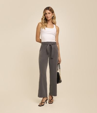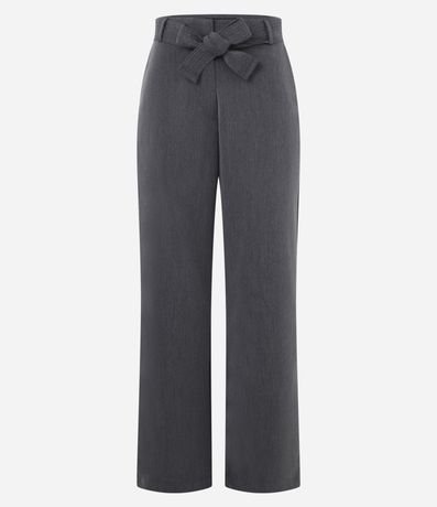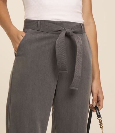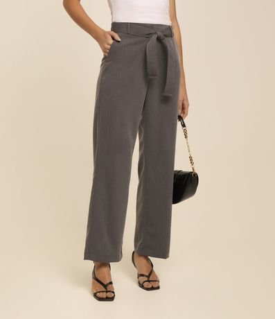 Ref: Calça reta em alfaiataria, cintura média, passantes no cós e com cinto de tecido combinando para amarração.