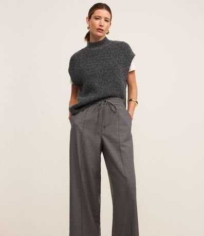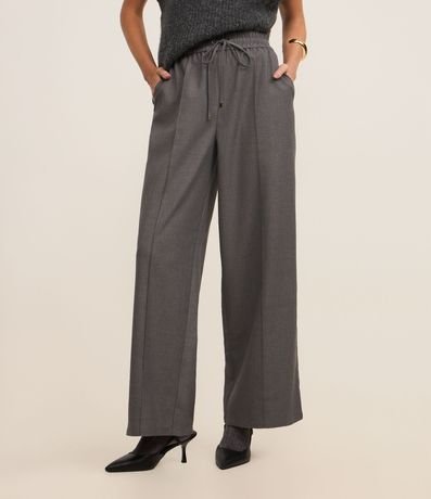 Calça Reta em Alfaiataria com Cós Elástico e Amarração