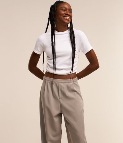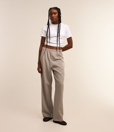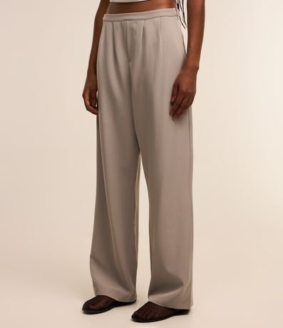 Calça Reta em Alfaiataria com Cós Fino e Pregas