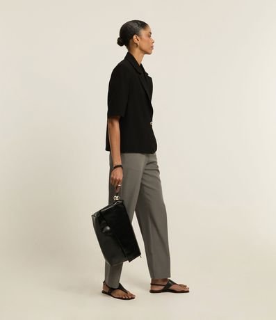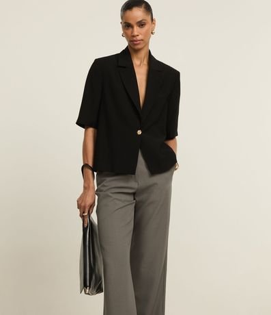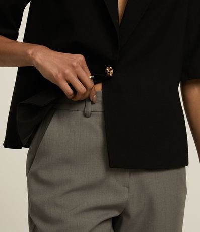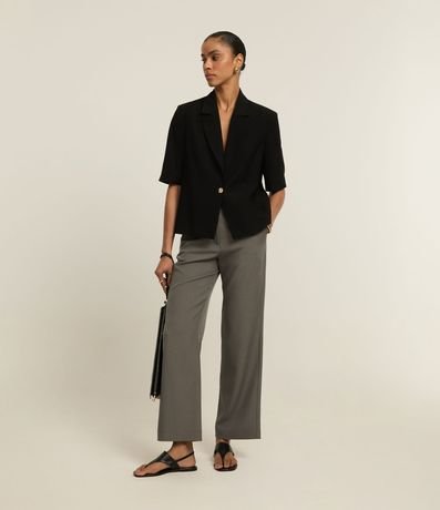 Ref: Calça reta com corte alfaiatado, confeccionada através de boas práticas ambientais, possui cintura alta e ganchinho no cós.