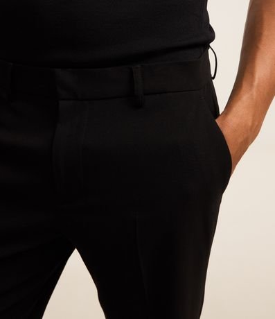 Calça masculina no modelo reta, cós com passante, fechamento vista oculta, bolsos em alfaiataria.