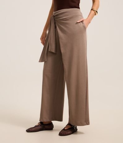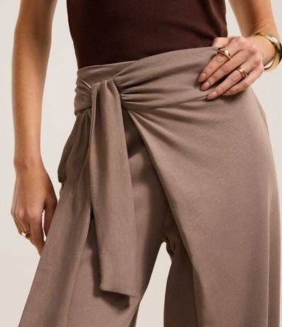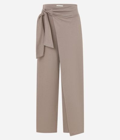 Calça reta, confeccionada em algodão, com transpasse com amarração e bolsos frontais. Este produto possui algodão certificado BCI em sua composição, além de ter sido produzido através de processos mais sustentáveis com boas práticas ambientais, sendo ambientalmente mais responsável.