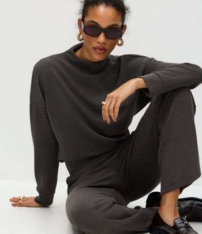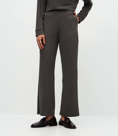 Ref: Calça reta feminina em anarruga confeccionado com poliéster mais sustentável. Possui cintura com elástico, cós largo que ajusta bem ao corpo e bolsos laterais funcionais.