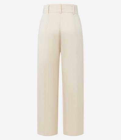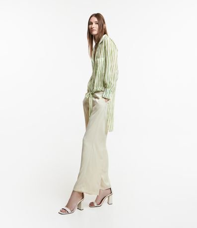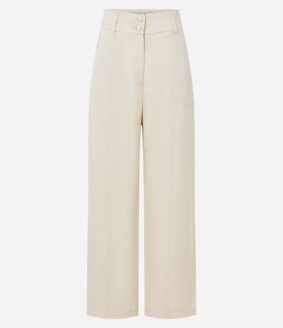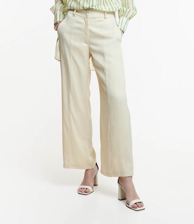 Ref: Calça reta feminina, confeccionada em chiffon, com abotoamento frontal no cós, passantes e superfície sem estampa.