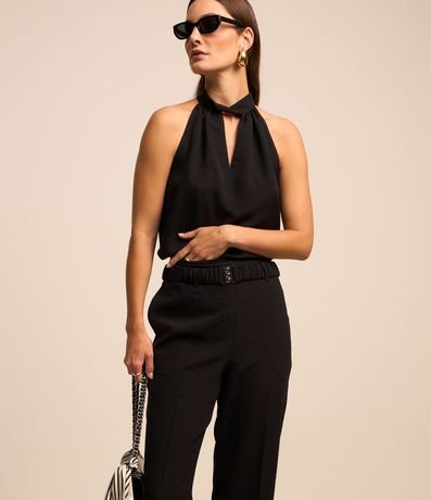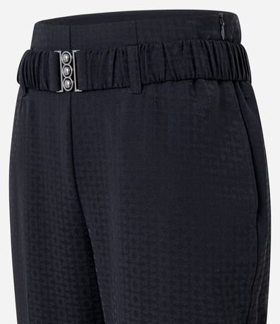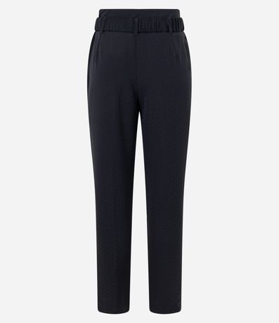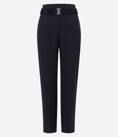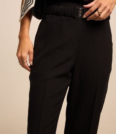 Ref: Calça reta feminina, confeccionada em jacquard, com cinto elástico, fivela e texturas na superfície.