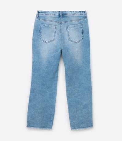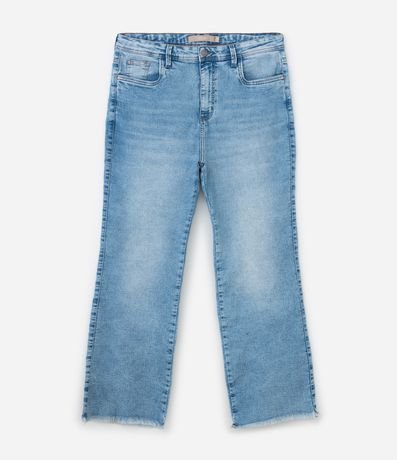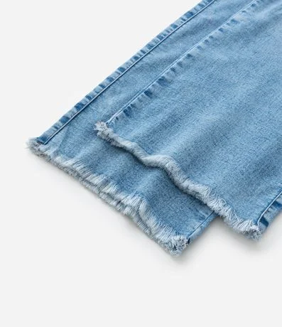 Ref: Calça jeans reta com ajuste elástico no interior do cós e barra desfiada.