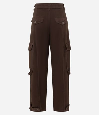 Ref: Calça reta com bolsos cargo, confeccionada em jeans denim, passantes no cós e friso frontal.