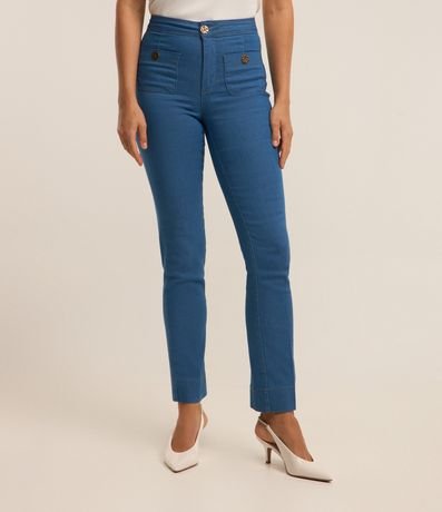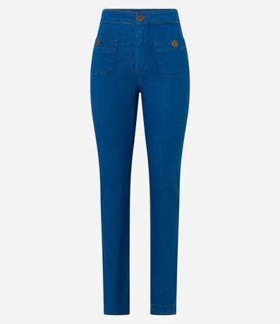 Calça Reta em Jeans com Bolsos e Botões