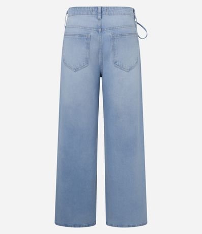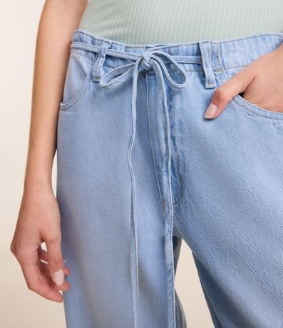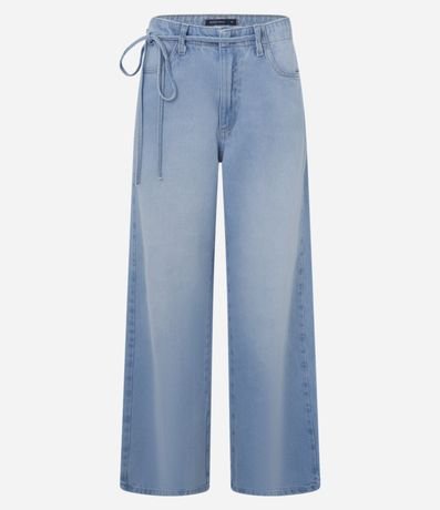 Calça Reta em Jeans com Cintura Baixa e Cinto de Amarração