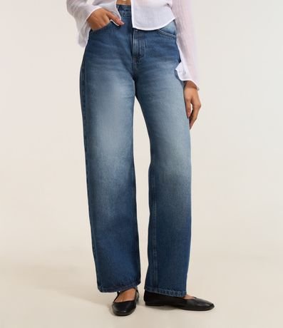 Ref: Calça feminina confeccionada em jeans de algodão mais sustentável, peça no modelo reta com cós fixo com passantes, fechamento tradicional, bolsos.