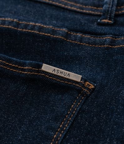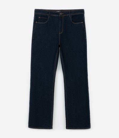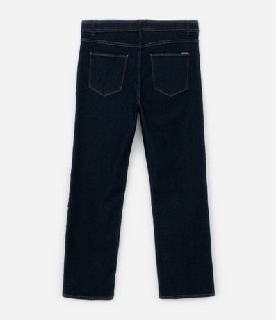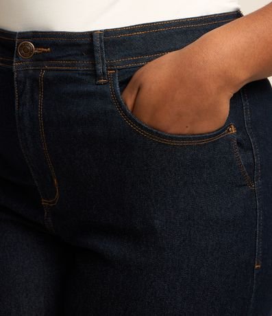 Ref: Calça jeans plus size, modelo reto, com bolsos, fechamento tradicional e ajuste elástico no interior do cós.