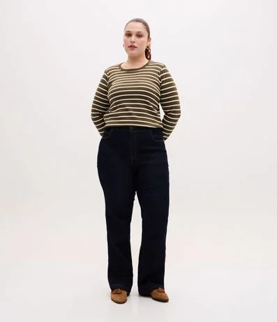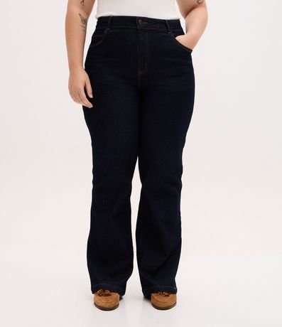 Ref: Calça jeans plus size, confeccionada em jeans com elastano, com cós fixo e sem estampa. Possui modelo reto, bolsos e fechamento frontal tradicional com botão e zíper.