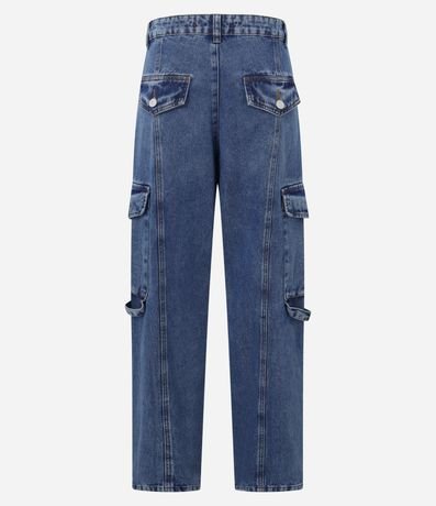 Ref: Calça reta, confeccionado em jeans mais sustentável, cós com passantes e bolsos cargo nas laterais.