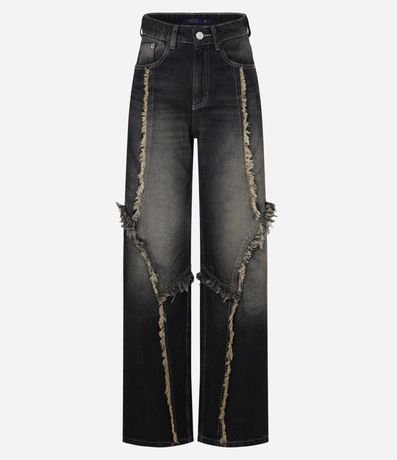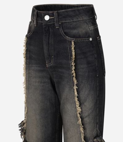 Calça Reta em Jeans Dirty com Recortes Desfiados