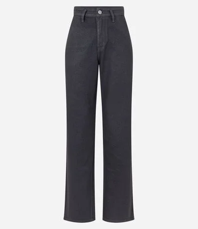 Ref: Calça reta, confeccionada em jeans resinado com bolsos faca na lateral e sem estampa.