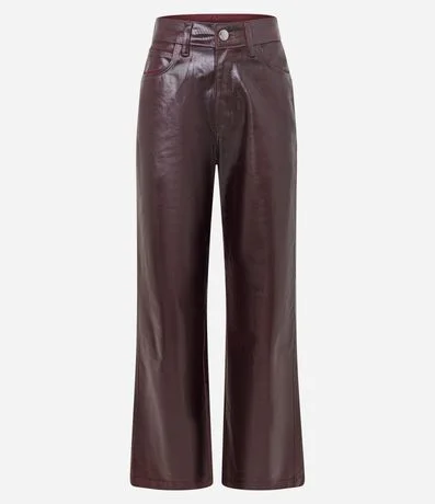 Calça Reta em Jeans Resinado com Cintura Alta