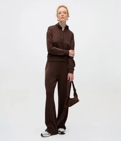 Ref: Calça reta confeccionada em modal, oferecendo toque macio e caimento leve. Modelo de cintura alta, ideal para compor produções confortáveis e elegantes no dia a dia. Possui acabamento clean e aparência sofisticada, confeccionada em viscose certificada para um processo mais sustentável.