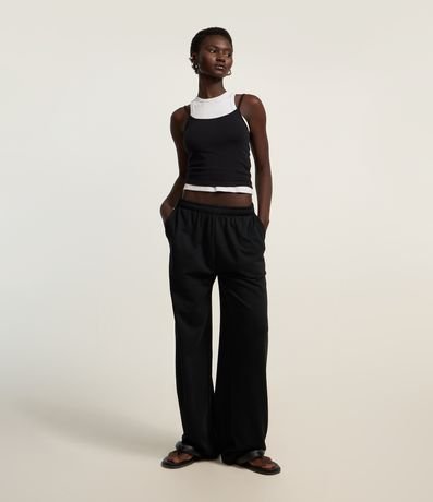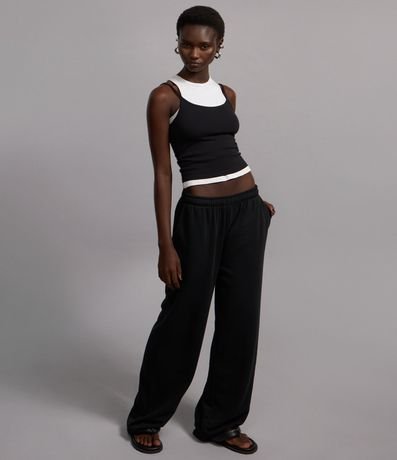 Calça Reta em Moletom com Amarração Interna na Cintura