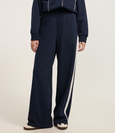 Ref: Calça feminina de modelo reto, confeccionada em algodão, com amarração no cós.
