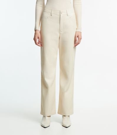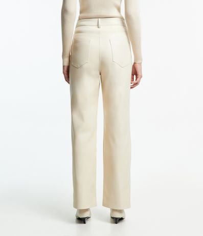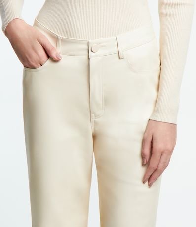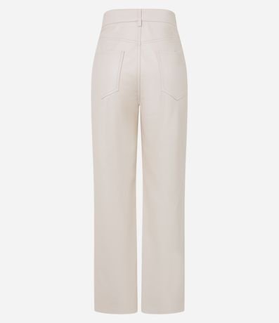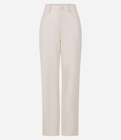 Ref: Calça reta feminina, confeccionada em PU, com passantes no cós, abotoamento frontal e bolsos.