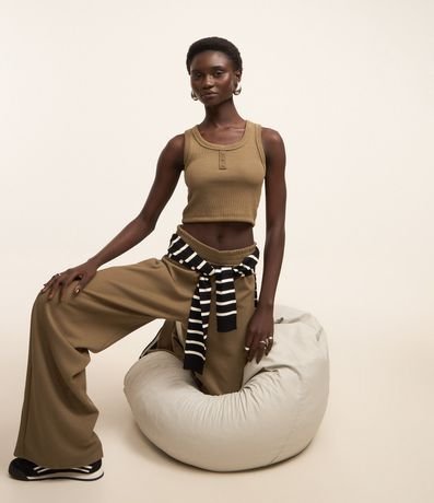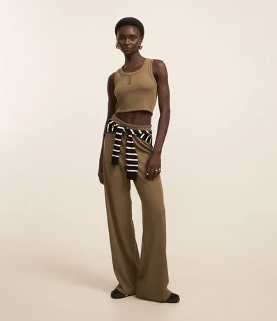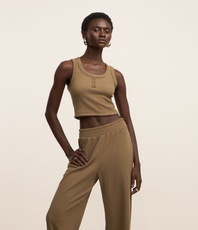 Ref: Calça reta em ribana com cós largo em elástico, texturizada confeccionada em boas práticas ambientais e sem estampa.
