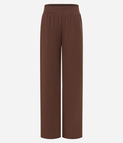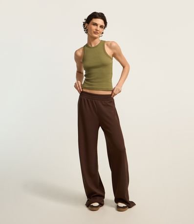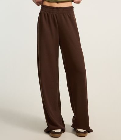 Ref: Calça reta em ribana com cós largo em elástico, texturizada confeccionada em boas práticas ambientais e sem estampa.